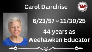 The Weehawken School District is mourning the loss of a cherished educator, Mrs. Carol Danchise, who passed away peacefully last evening. With a dedicated career spanning 45 years, Mrs. Danchise was a beloved teacher at Roosevelt School, inspiring countless students and colleagues alike.